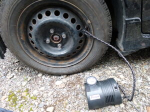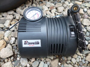 空気入れです。車内のシガーソケットから電源を取り、電動で空気を入れてもらえる装置です。車の安全な走行を確保するために、タイヤの空気圧は適正に保っておく必要があるので、空気入れは必要な作業となります。私は利用したことがありませんが、ガソリンスタンドでも空気を入れている光景もよく見るので、持っていない方は最寄りのガソリンスタンドに問い合わせてみてください。