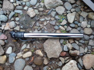 私が昔から使用しているエアゲージで、タイヤについているバルブに頭を「ぷ!」っと挿し込んでおケツから「ぴゅ!」っとメモリが飛び出してくるタイプです。最近(!?)はダイヤルゲージが付いているものが主流なんですかね?私はこれで十分です。